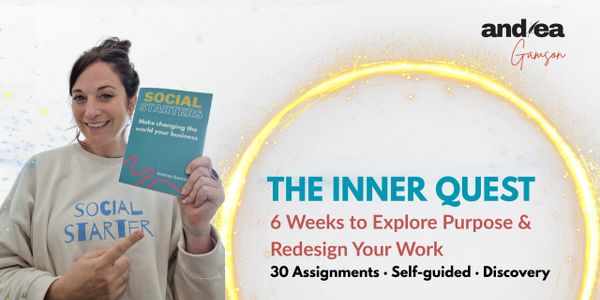 The Inner Quest online course is perfect for those who are dipping their toes into their purpose quest, or for those who are reading Social Starters: Make Changing the World Your Business and want a companion to guide them. Over 12 weeks (one module release each week over 6 weeks) you will be guided by Andrea through a series of online videos in the learning platform, through the 6 Ps of Purpose framework that lead you from Personal Identity, to Passion, People, Principles, Prioritisation and then Profit. This proven methodology is the basis for many careers launched by Social Starters between 2014-2023. Course fee of £280 includes 50% discount on coaching for up to 3 sessions.